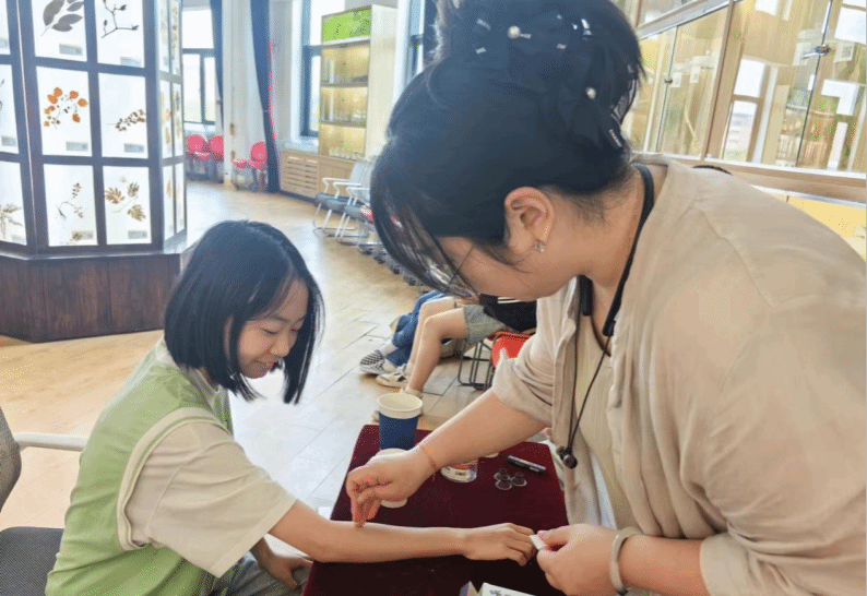 此外,养生代茶饮区和中药香囊DIY区也吸引了众多师生的关注。李楠老师负责的养生代茶饮区提供了多种具有保健功效的茶饮供师生品尝,还为大家介绍了各种养生代茶饮的配方和功效,让大家在品尝美味的同时,也能了解到中医药在保健养生方面的智慧。王宇萌老师则指导师生亲手制作中药香囊,让大家在体验中感受到中医药文化的魅力和乐趣。