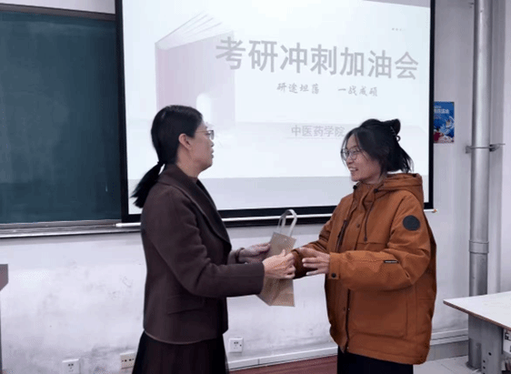 参会学生纷纷表示,“备考过程中虽然有时辛苦,但老师们的关心和指导一直陪伴着我们,也让我们更加明确了自己选择中医药事业的意义。”大家坚定表示,将抓紧最后的时间认真复习,全力以赴,不辜负学院的培养和期望。会上,学院领导还为考研学子发放了“考研加油包”,内含定制文具等实用物品,表达对同学们的美好祝愿。
